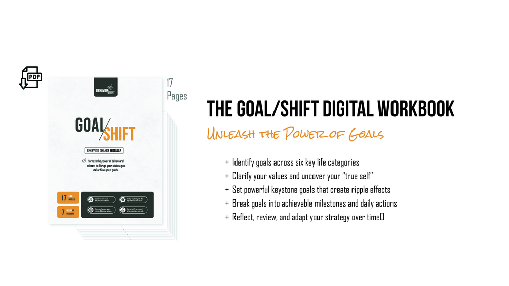 Created by behavioral scientists and goal-setting experts, this digital workbook gives you a science-backed structure to set better goals and achieve them. Whether you’re using it on its own or as a companion to the Goal/Shift video series, this 17-page guide gives you the clarity, tools, and space you need to build momentum and stay focused on what matters most.